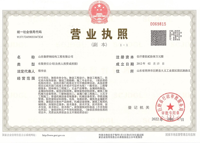 公司現有員工150人,本科、??迫藛T20人,包括科研人員、高級工程師、各類技術人員多人,設立5家安裝項目部。建立了完善的設計、科研、生產、安裝施工一條龍體系。 公司采用現代化企業管理制度,已經通過ISO9001:2000質量體系認證,實現了對產品研發、生產管理、安全施工全過程控制,公司被授予高新技術企業、朝陽企業稱號。公司不僅是鋼結構行業的領跑者,還是重合同守信用的守護者。